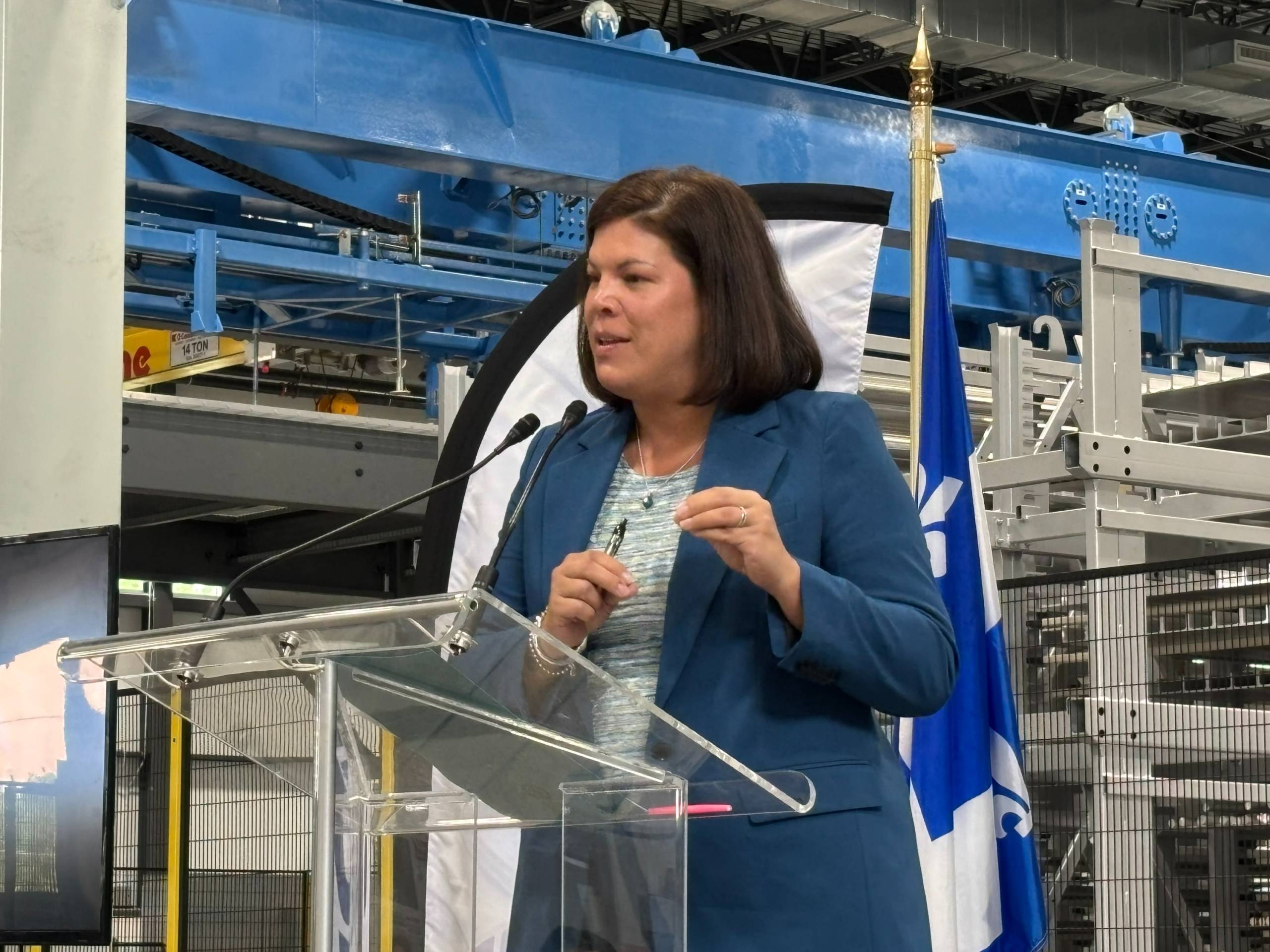 «Ce programme permettra de consolider notre expertise au Québec. Dans le contexte qu’on connaît avec les tarifs, un projet comme celui-ci, c’est judicieux», a déclaré la ministre devant un parquet d’invités et dignitaires.